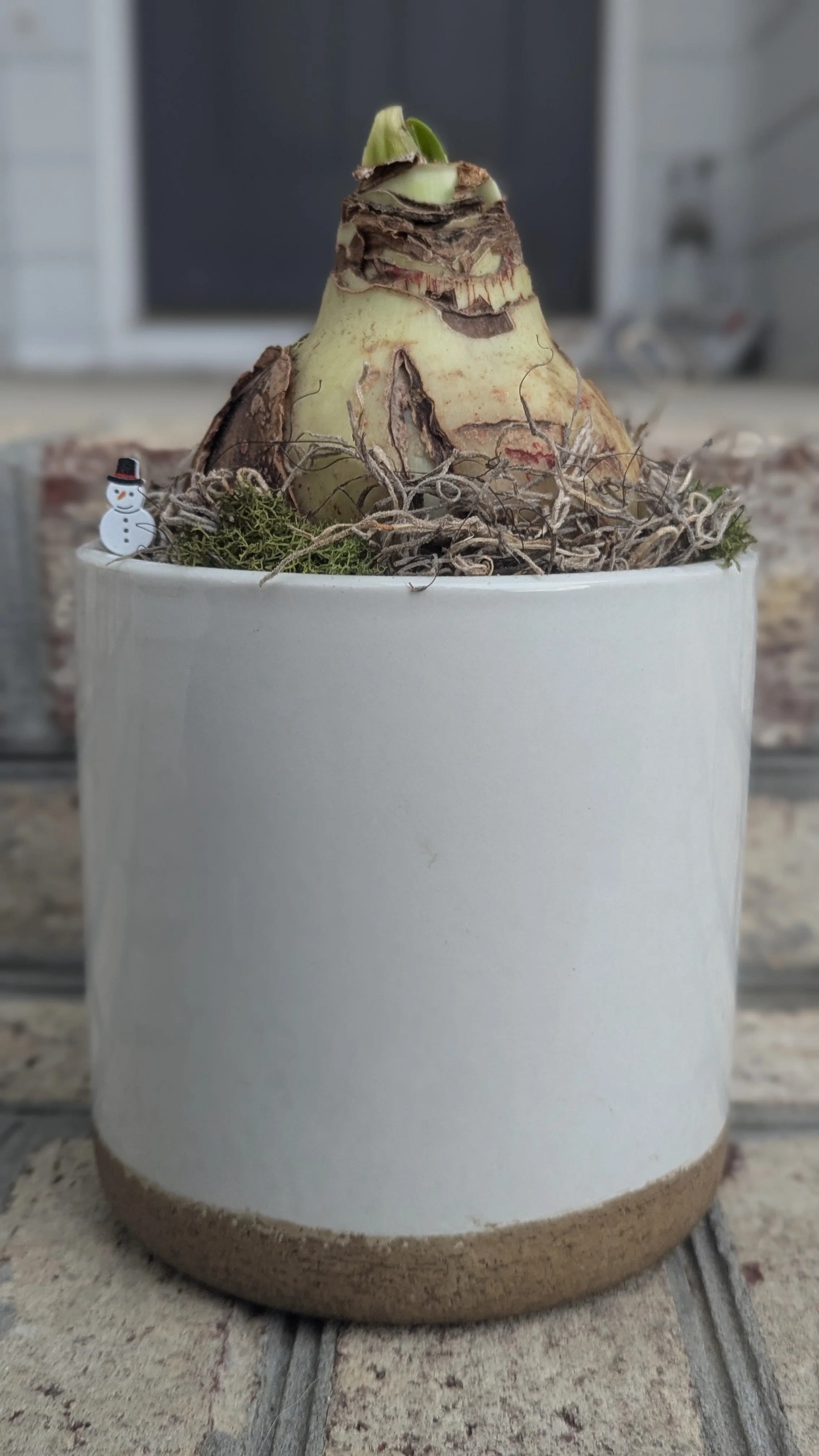 They are elegantly planted in a charming 5" white or black planter, our attention to detail is further enhanced with a delicate layer of moss, which not only conceals the soil but also adds a touch of natural sophistication. Prepare to be enchanted as these stunning bulbs effortlessly add a pop of color during winter’s dreary days.